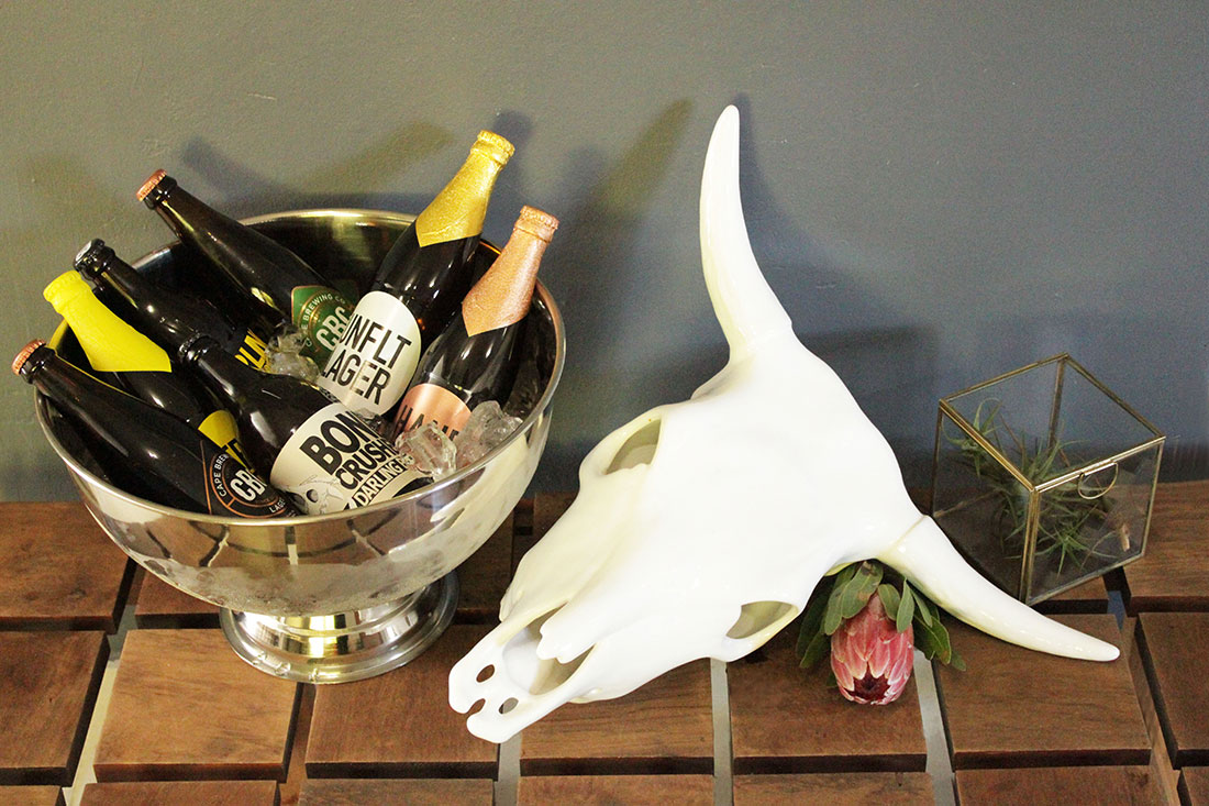 When Loraine asked me to help her with her husband’s 40th birthday she only had one request, “It must be manly but elegant”. How do you go about styling a party that is both manly and elegant? You start with the décor; we used Cow Skulls from the Ceramic Factory and combined that with Protea’s and air plants in order to give it a softer more elegant feel. Since Loraine’s husband grew up on a farm we knew that he would appreciate the sentiment.